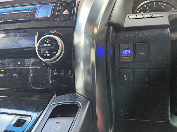 USBコネクター取り付けAGH35アルファードスイッチの空きスペースに充電用のUSBコネクターを付けて欲しいとの依頼です。ステアリングコラムの左側の空きスペースに取り付けますが、ナビ廻りやセンターコンソールを外さないとこのパネルは取れない為、工賃はやや高くかかります。電源はアクセサリー回路から取っています。