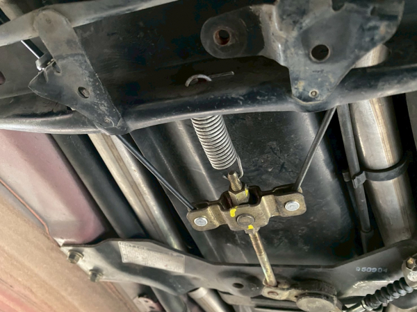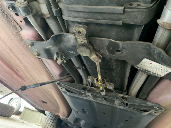 室内のパネルを取り外したらレバーを外しワイヤーを外します。下回りのアンダーカバーを外して左右のリアキャリパーまでワイヤー取り外します。全部で3本です。