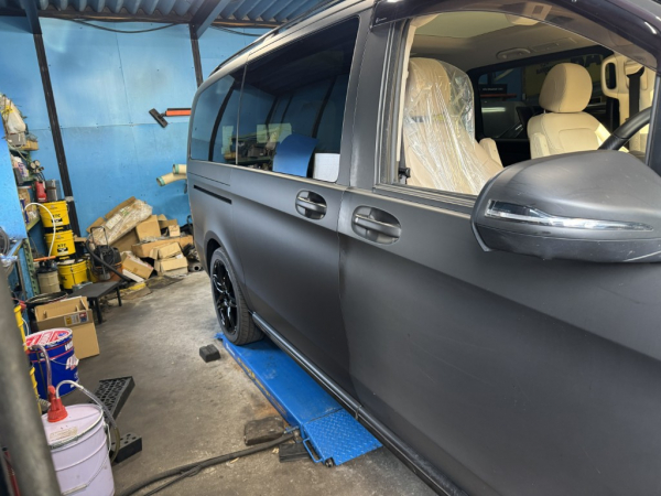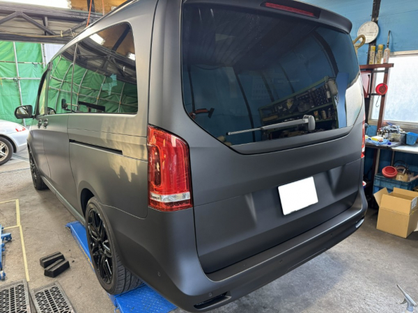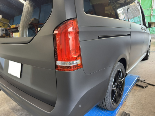 車両はVクラスでラッピングフィルムはマットブラックに