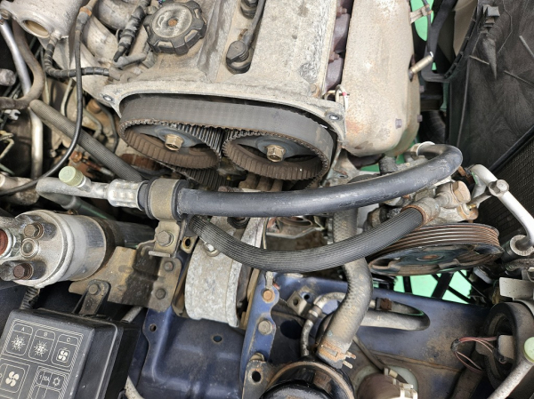 三菱 ミラージュ タイミングベルト交換車検で入庫されたCK2Aミラージュです。走行距離が20万㎞で2回目のタイミングベルト交換の時期です。ウォーターポンプも漏れの痕跡やごろつき感が有る為、同時に交換致しました!程度は悪くないのですが、ボルトの錆には苦労しました……。